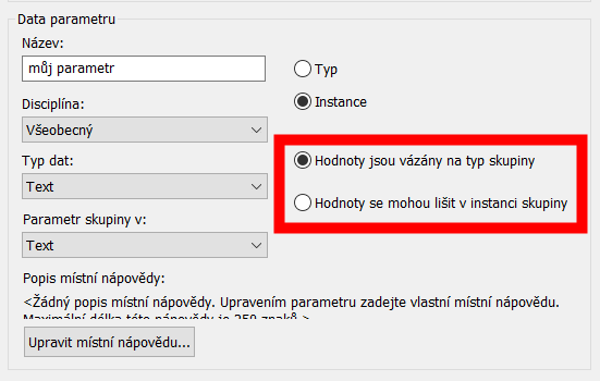 Parametry projektu a nastavení Hodnoty se mohou lišit v instanci skupiny